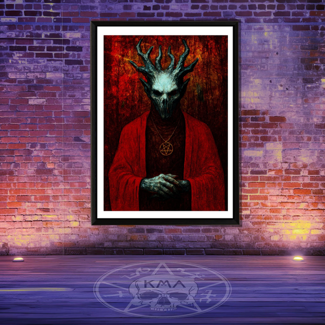 A striking piece of occult-inspired art that blends reverence, darkness, and symbolism—designed for collectors of gothic, surreal, and ritualistic imagery.