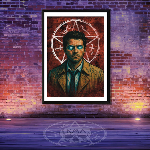 Angel eyed cass from supernaural in a graffiti style artwork
